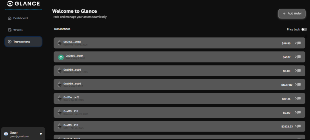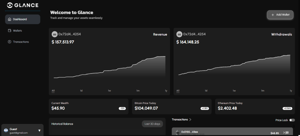 You already own your assets. Now own your records. Glance gives you full financial insight, directly from the chain, with zero compromise.