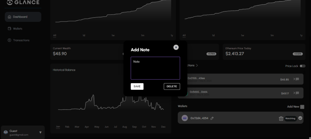Glance reads your on-chain activity and transforms it into real-time financial intelligence. All it needs is your wallet address. No setup. No tracking. Just clarity